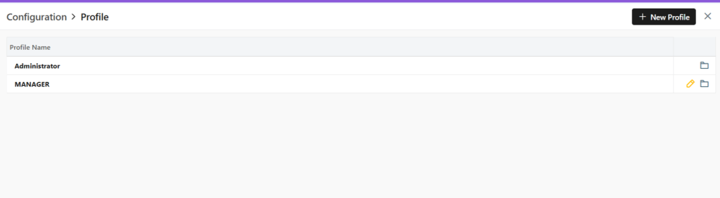- There are 2 default Profile, namely, Administrator and Manager.