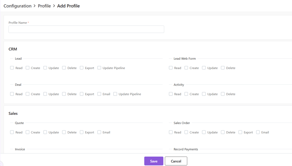 In Zhylar, profiles determine what features and functionalities a user can access within the platform. Profiles control “who sees what” based on hierarchy. Profiles define “what a user can do.” This includes creating records, editing data, or generating reports. Zhylar assigns the right profile to ensure every team member has the exact tools they need. This helps them perform their job efficiently without unnecessary clutter or access.