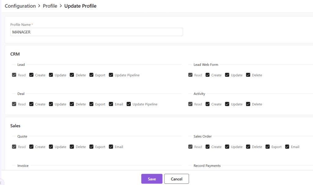 Some common Profiles in CRM/CPQ systems include: