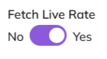 - If Fetch Live Rate is off, an exchange rate can be entered manually.