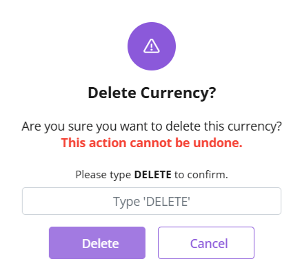 Note: Each currency must carry a unique name/code. Duplicates are not permissible in the system.