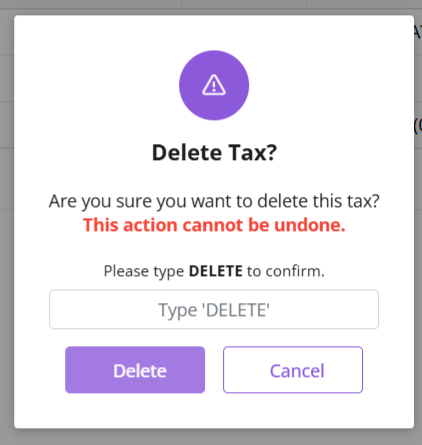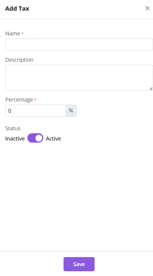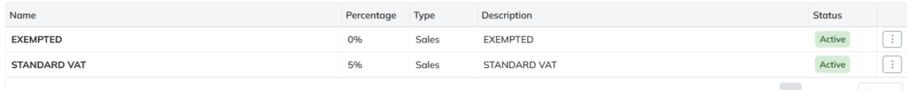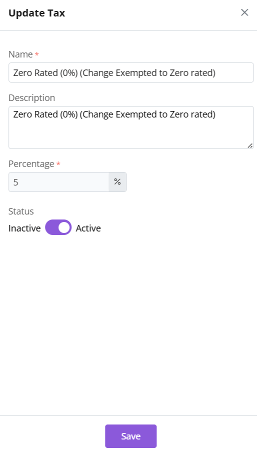 - Toggle between active/inactive status depending on whether tax is in use or not.