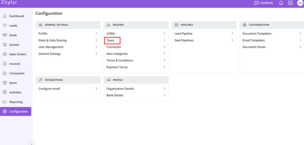 - If the Tax is associated with some other modules, then it cannot be deleted.