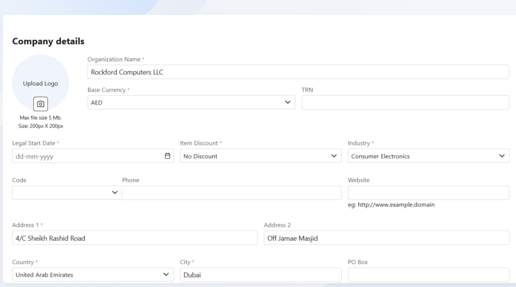 - Company details- details of your organization