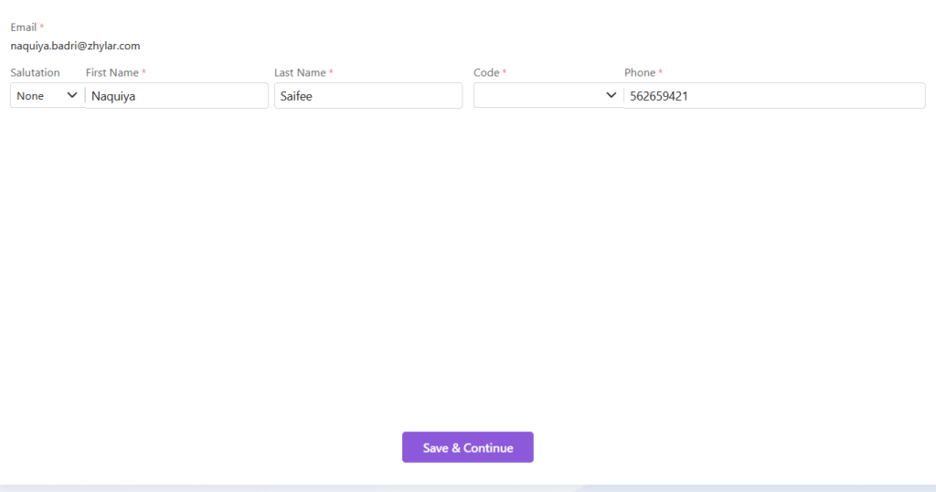 - Personal details- details of the Organization Admin himself/herself