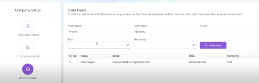- Invite users- add your teammates and employees to join your organization on the Zhylar platform.