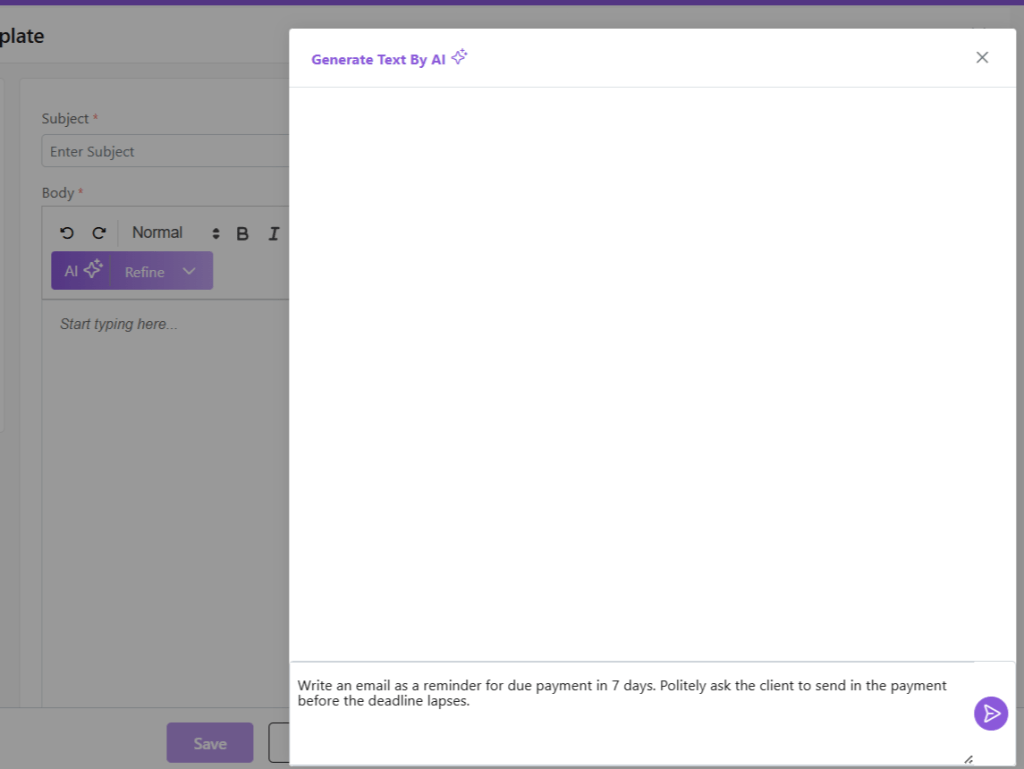 - Once done, click on Save to save your AI-generated email template.