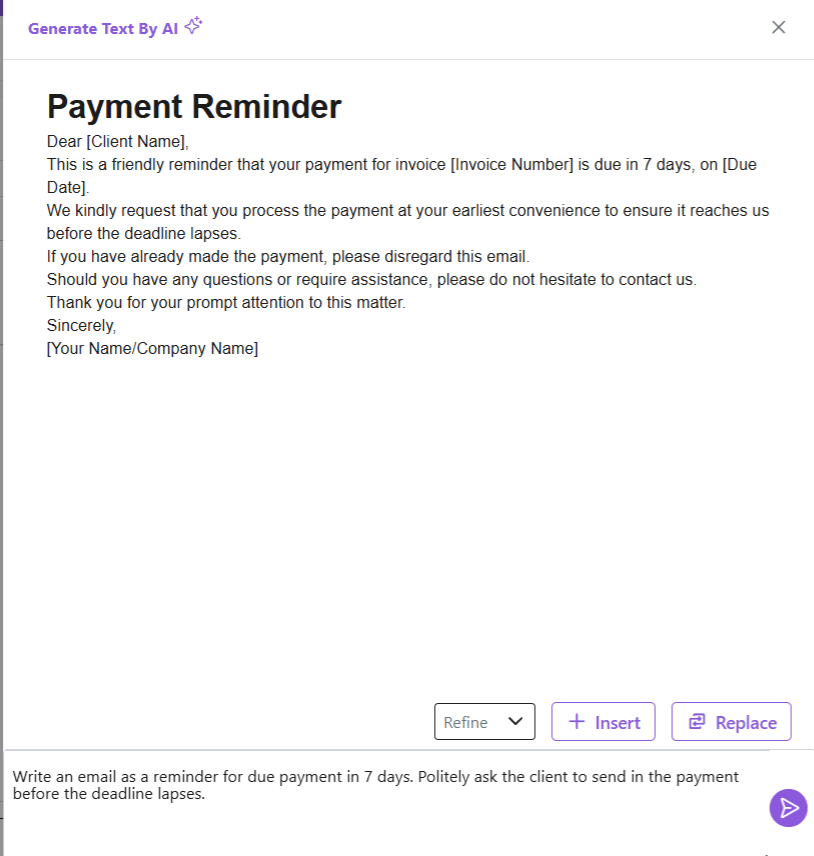 - Refine: Based on your preference, you can ask the AI email generator to refine the text.