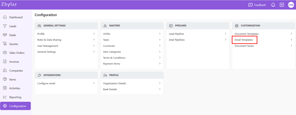 Email templates in Zhylar offer pre-designed formats for quick communication, consistency and ensuring accuracy. These templates can be customized for brand alignment.