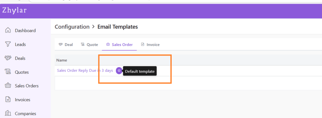 - If there is only one template in the system, the existing template will be marked as default automatically.
