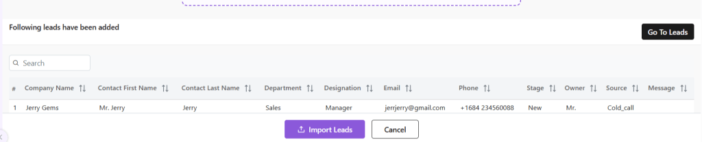 - Your Leads will be added to the system.