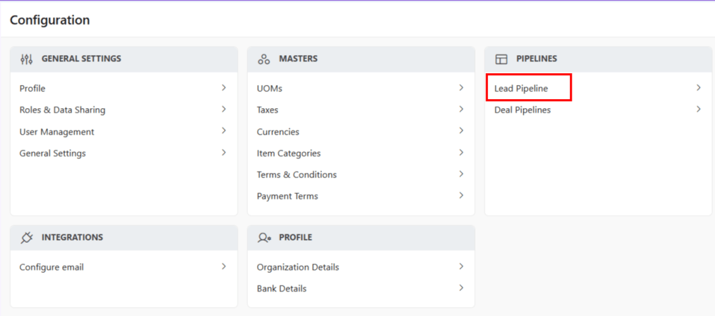 - Under Pipelines, select Lead Pipelines.