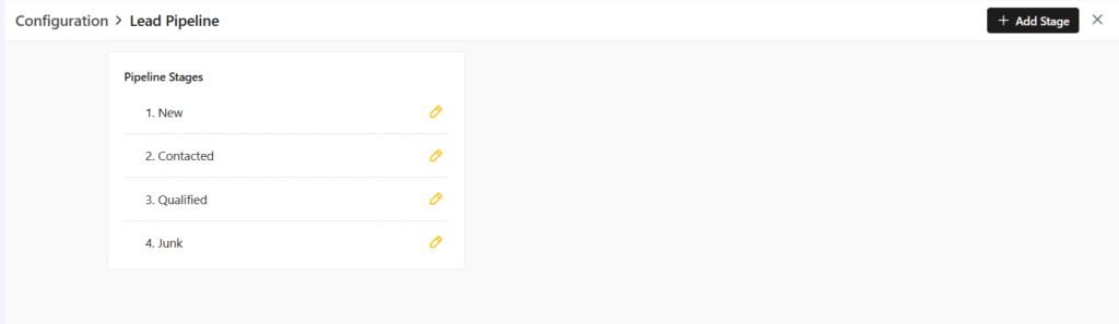 - To add new stage, click on + Add Stage