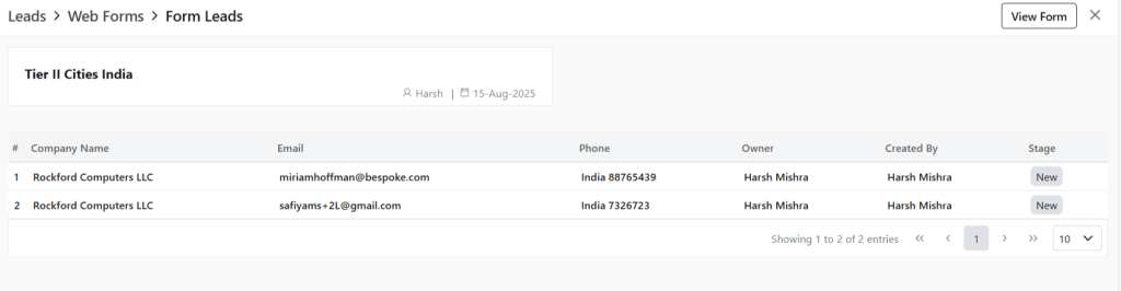 - Form Leads- Click ⋮ 3 dots > Check leads received from particular web form