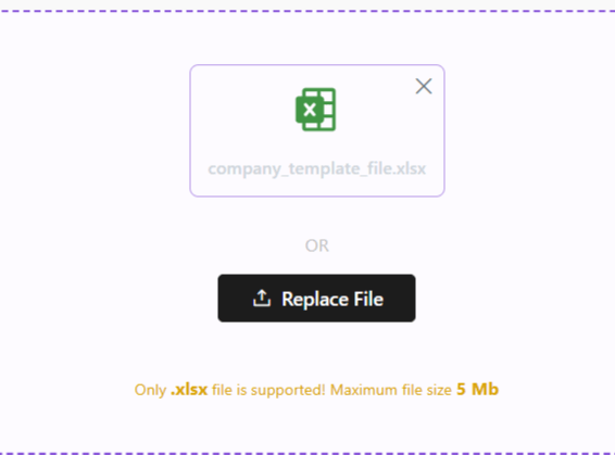 - In case there is an error with the file upload, simply click Replace File and try again.