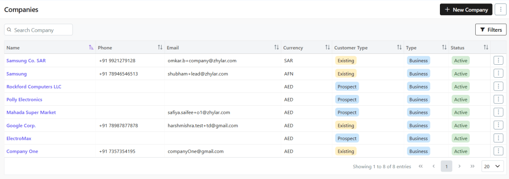Once your Companies have been imported, you can now proceed. Read about how to navigate through the Companies module at Zhylar.