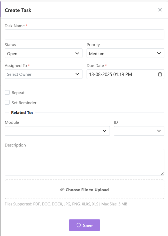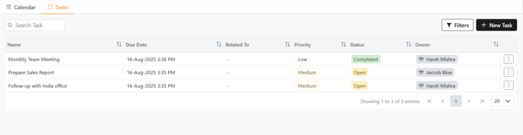 In a CRM system like Zhylar, tasks are activities or to-dos. They are linked to leads, deals, or contacts. These tasks help teams stay on top of their sales process. Tasks can include follow-up calls, meetings, sending proposals, or reminders for payment collection. They ensure accountability. They prevent missed opportunities. They keep every team member aligned by clearly defining what needs to be done, by whom, and by when.