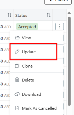 - A Quote can be updated at any stage except if it is marked as Rejected or Cancelled.