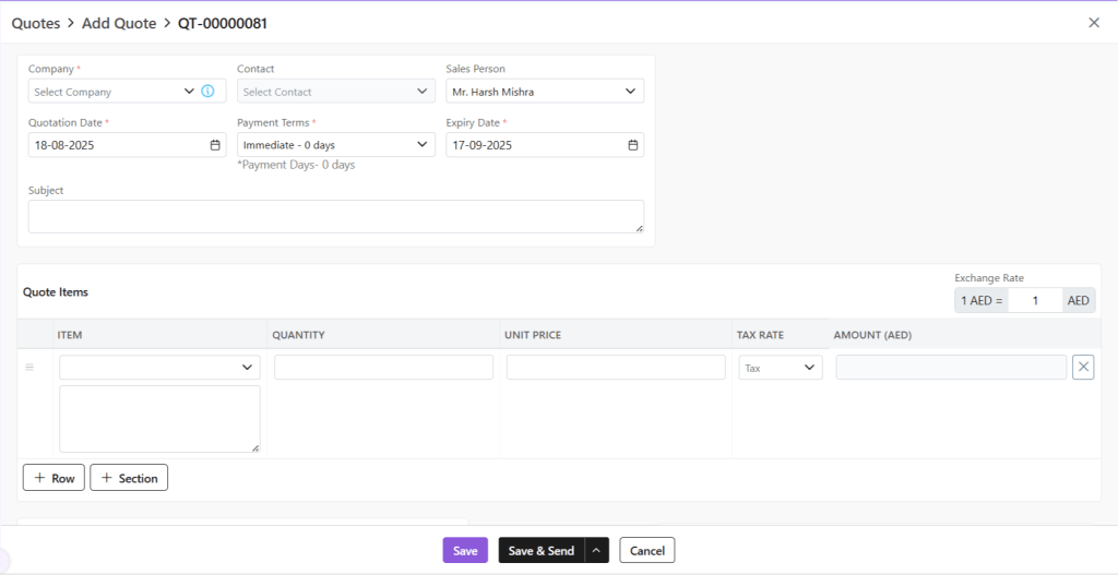 - Company: Select or add a company to whom this quote is being sent