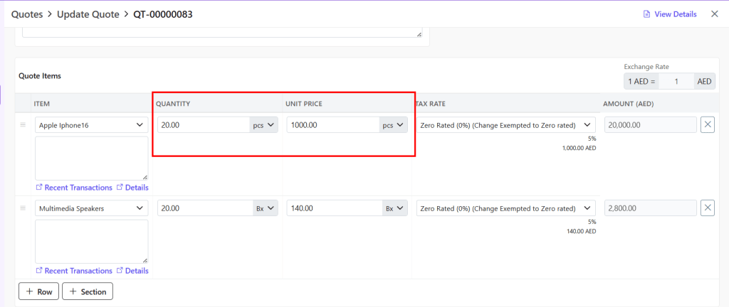 - Modify quantity and unit price