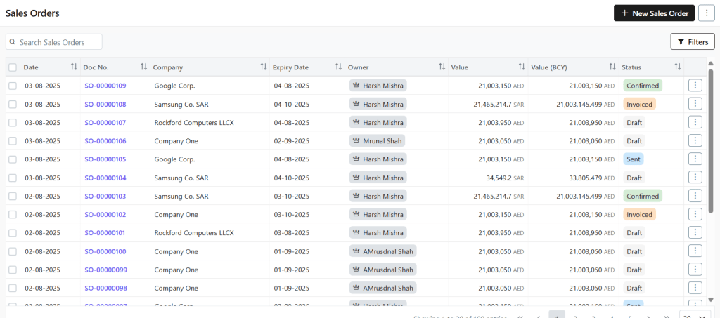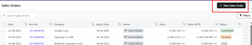 - Check the list of Sales Orders in the system