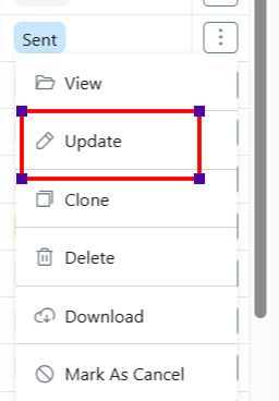 - Update: Make changes to an existing invoice if required.