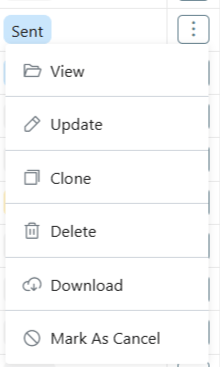 - Click on the 3 dots at the end of the Invoice you want to clone.