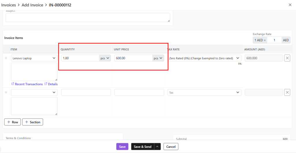 - Items– All items added to this invoice.