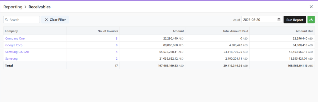 - E.g.,- Outstanding > Receivables