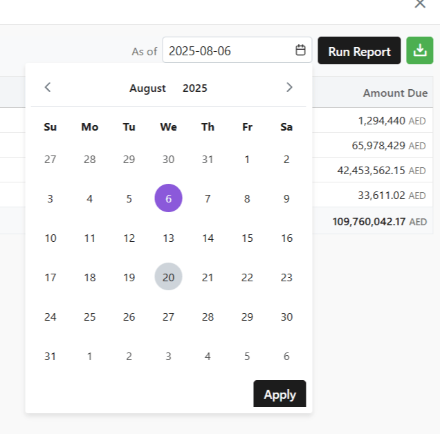 - Select the date up until which you want to check the data through the report.