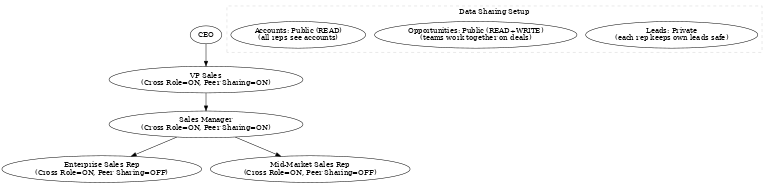 - Changing role hierarchy instantly changes who can see what.